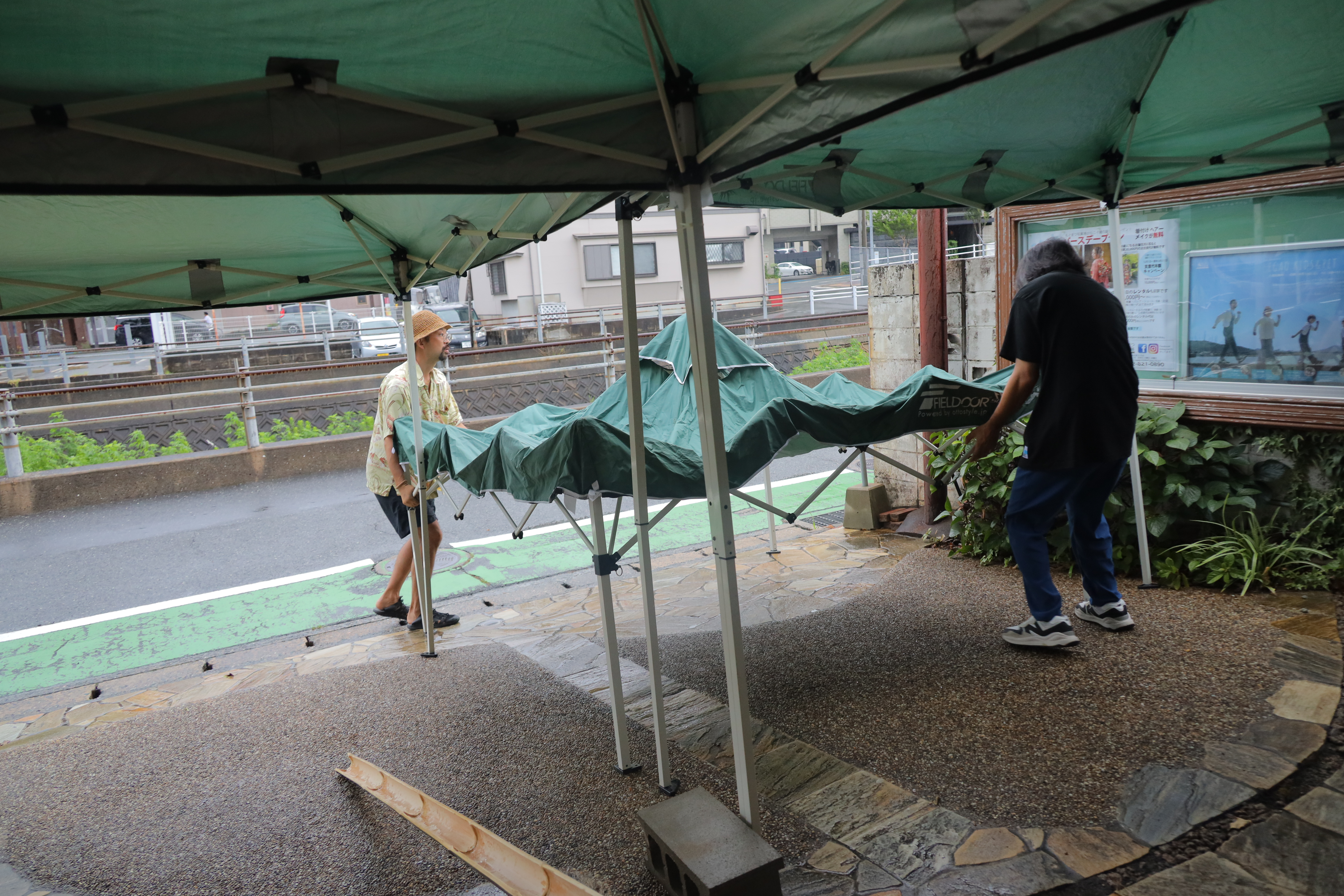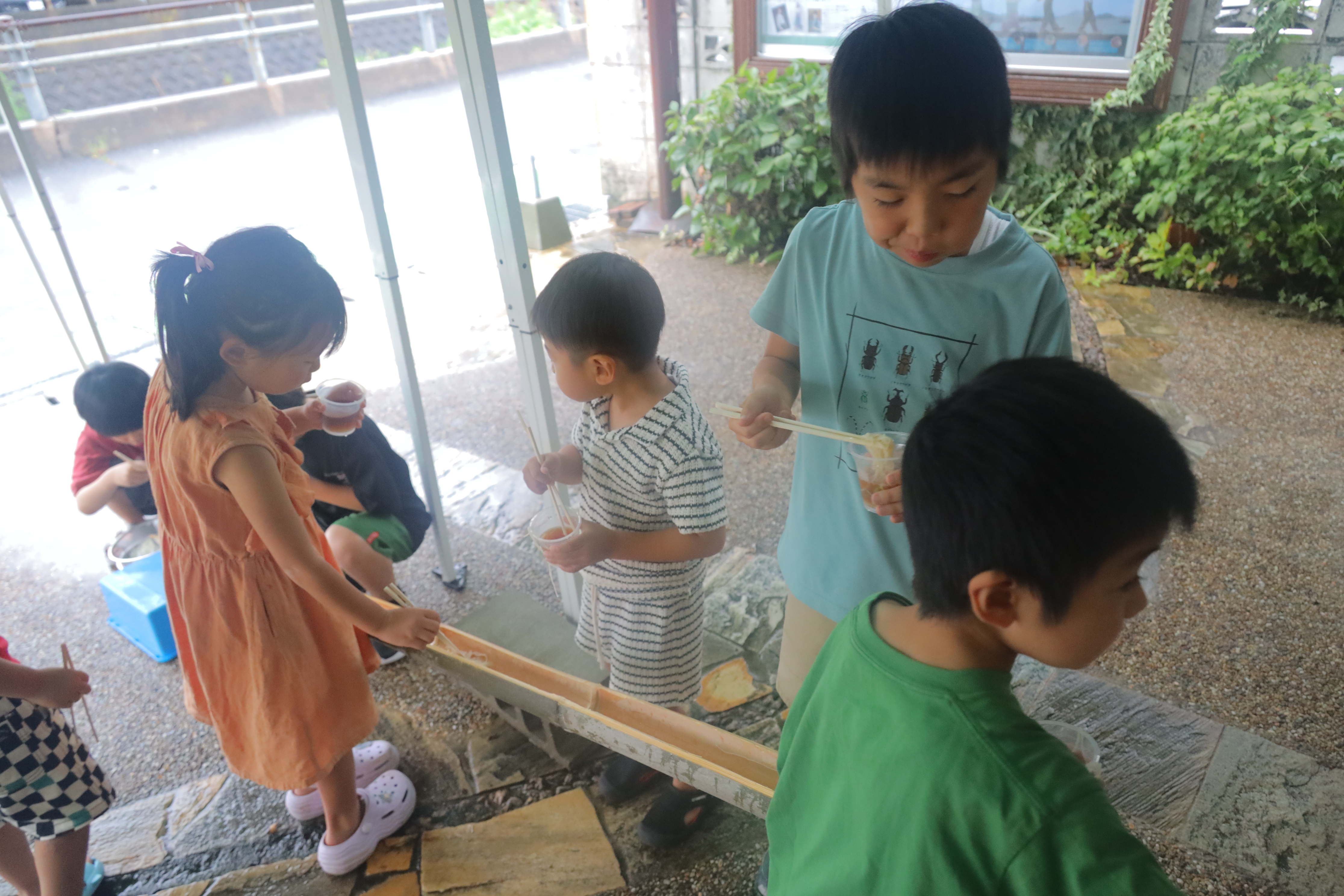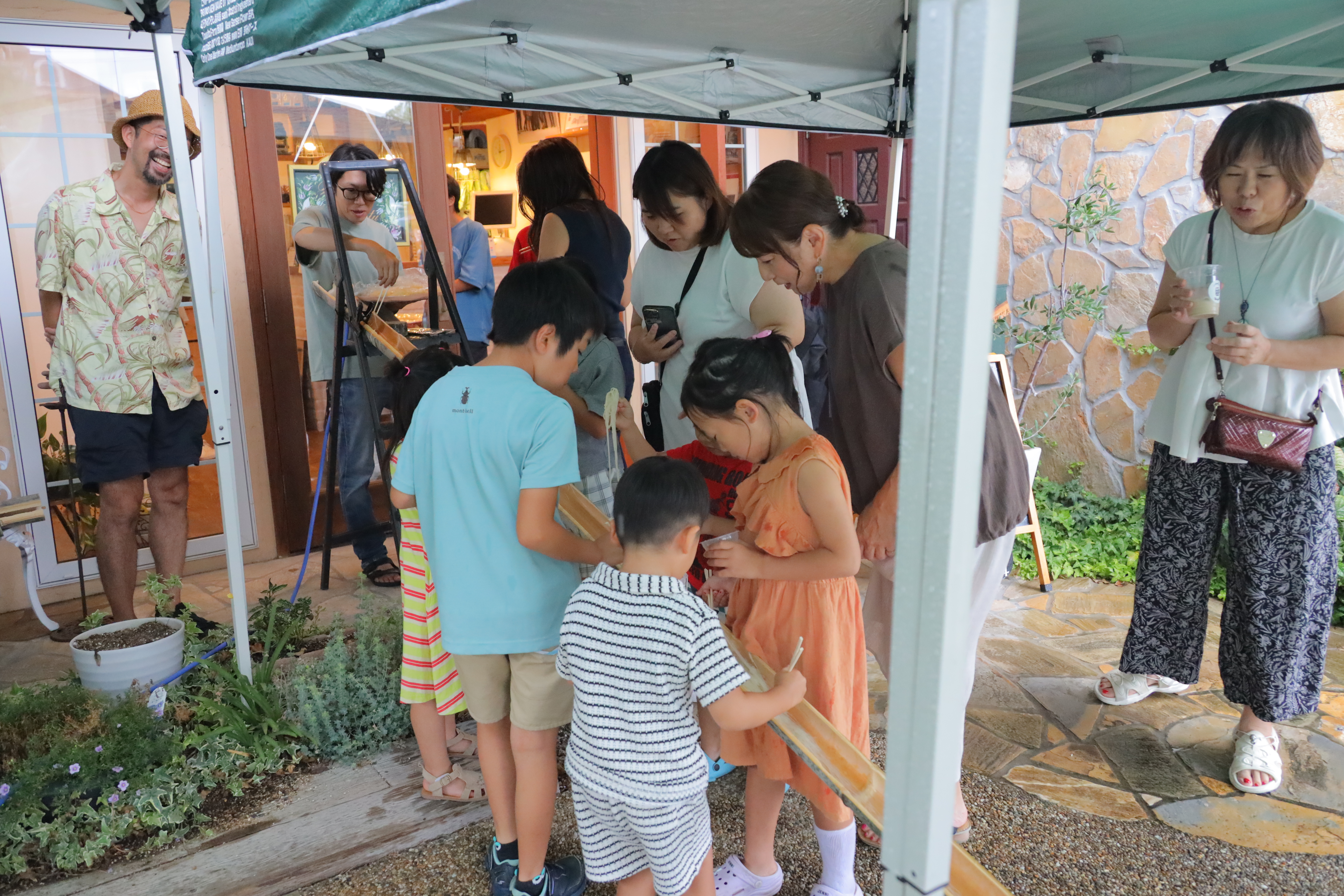 チラシにもポスターにも雨天中止と書いたそうめん流しは竹も切ったしどうしてもやりたいなと思ってあびる珈琲さんに相談してテント借りて強行!
